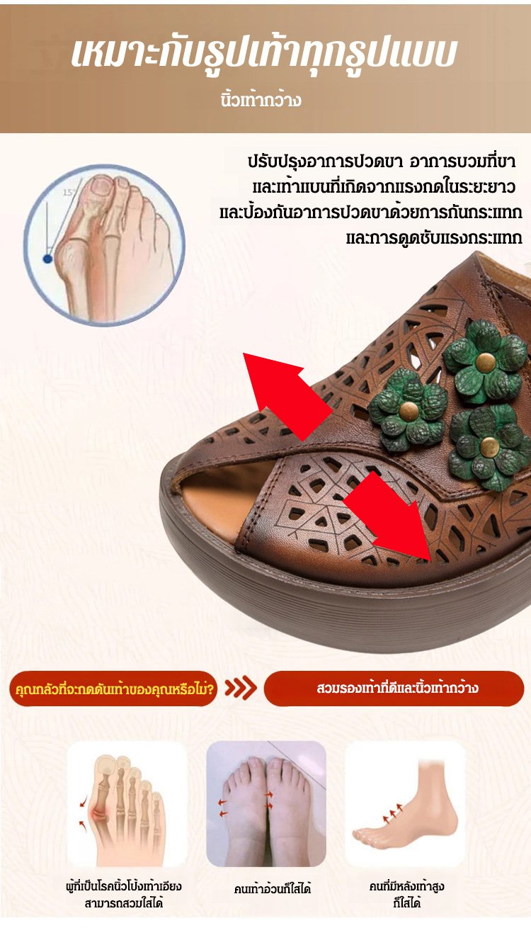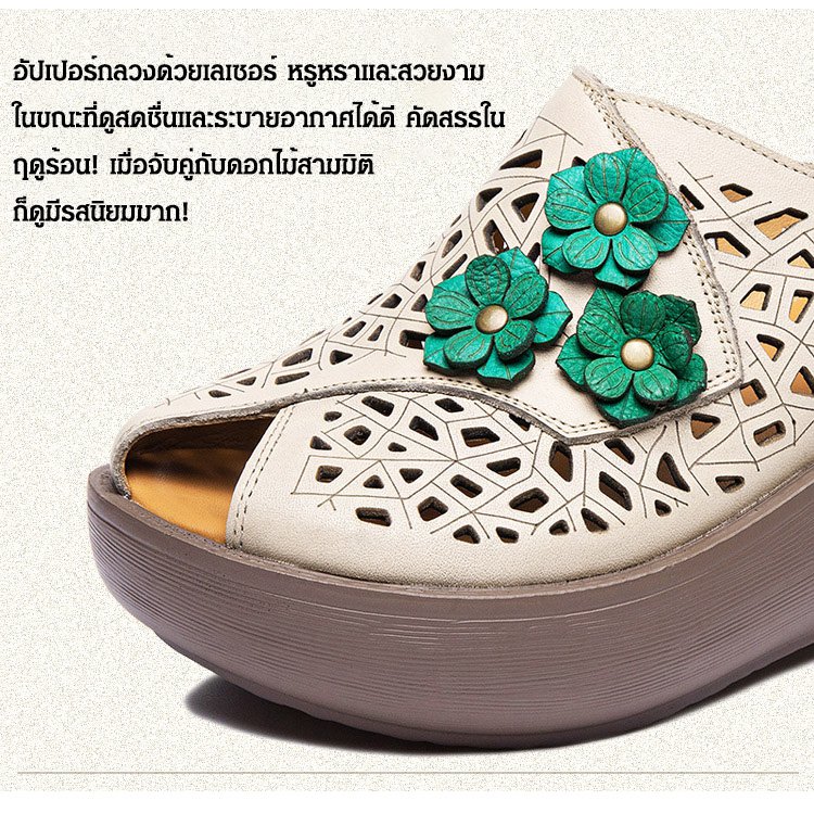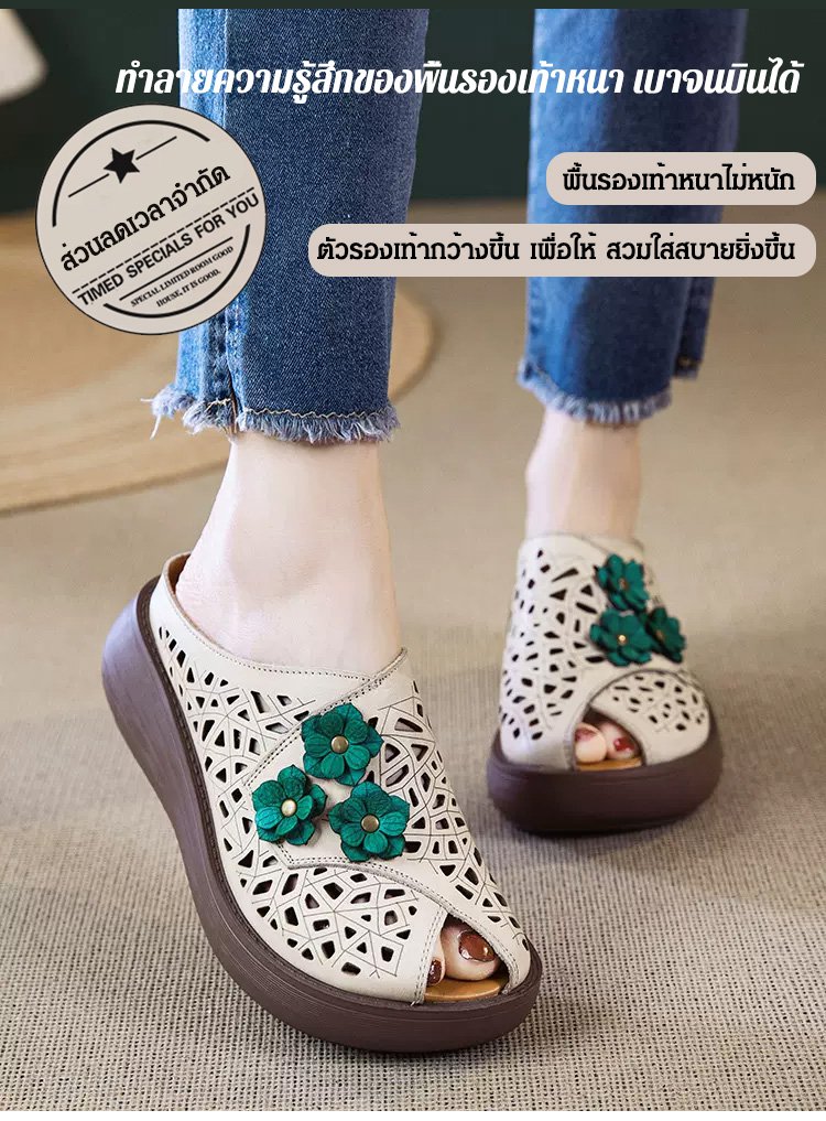 รองเท้าแตะพื้นหนา เปิดหัว หนังนุ่มคุณภาพสูง สไตล์ชาติพันธุ์
